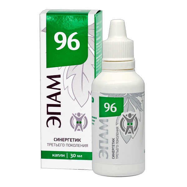 ЭПАМ 96 — источник активных веществ, которые поддерживают работу мочевыделительной системы, благотворно влияют на работу почек и оказывают общеукрепляющую поддержку организму. Натуральные компоненты обладают умеренным мочегонным, а также антибактериальным и противовоспалительным действием. Их традиционно включают в состав урологических сборов, используют для профилактики мочекаменной и желчекаменной болезней.